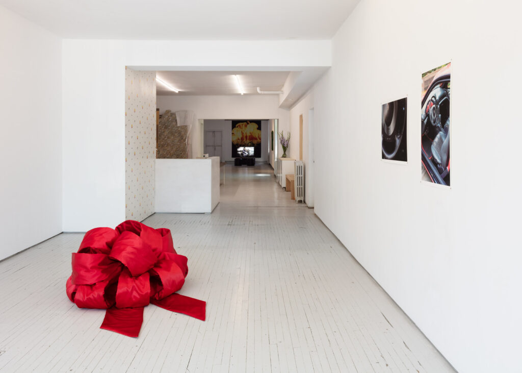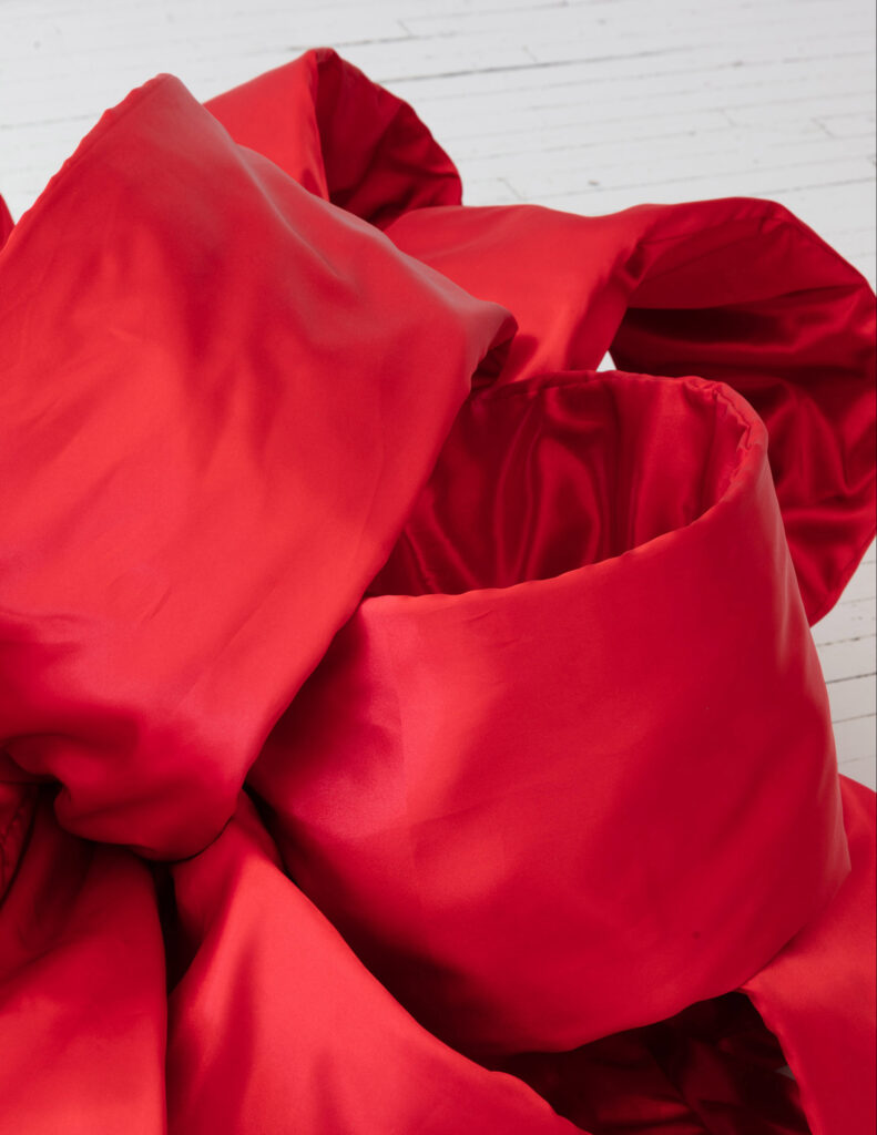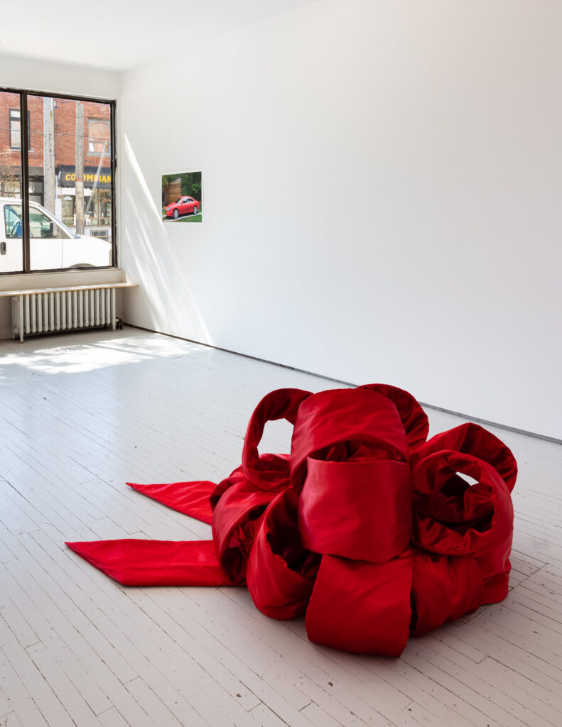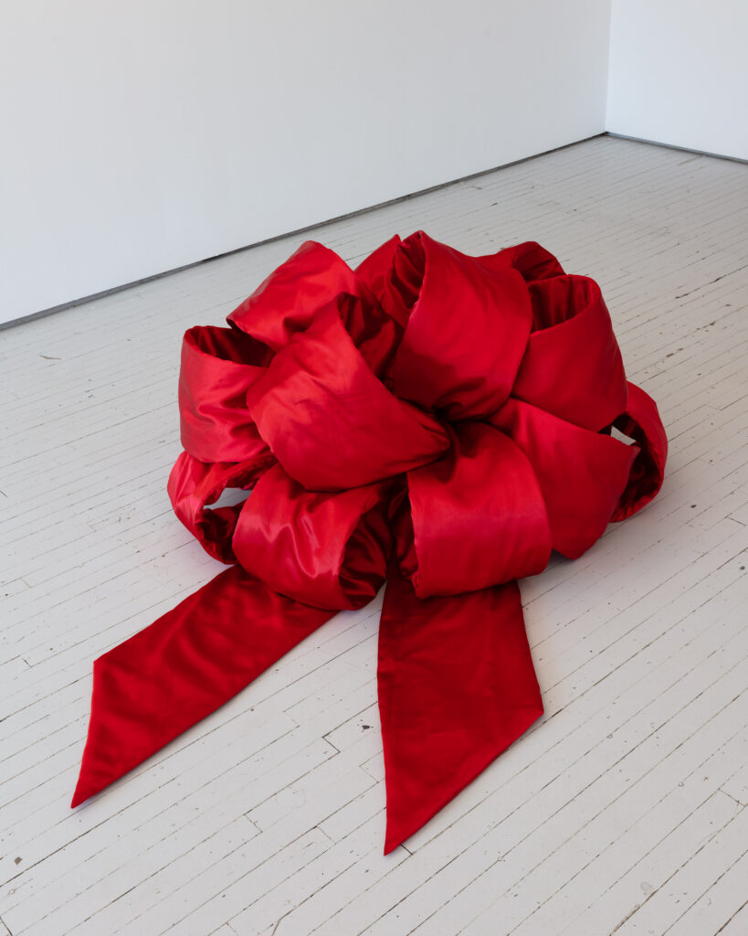 Conceived for CAR SHOW at Erin Stump Projects, Bow references Lexus’s “December to Remember” advertising campaigns. Launched in 1998, they established the visual lexicon of a festooned vehicle. The oversized, red car bow has since become a kitsch-pop cultural symbol. Aspirational and luxurious, it is synonymous with extravagant gift giving, and prizes.